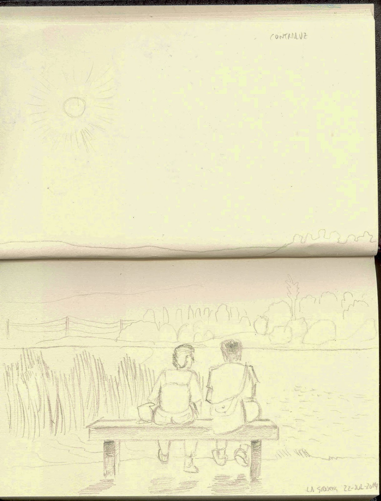 Al rato pude contemplar esta escena de dos mujeres hablando plácidamente en un solitario banco emplazado en la orilla del pantano, con el sol frente a ellas.
