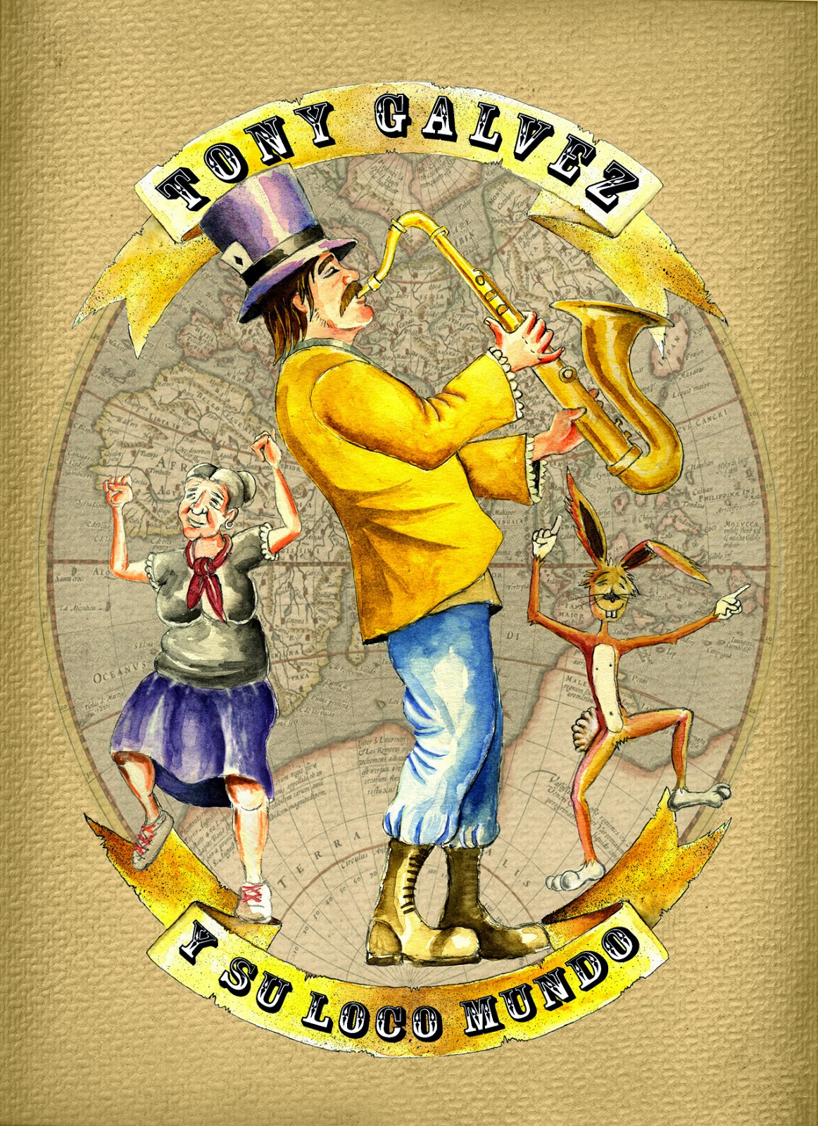 Este es un logotipo (todavía en proceso), para el proyecto musical de TONY GÁLVEZ Y SU LOCO MUNDO.