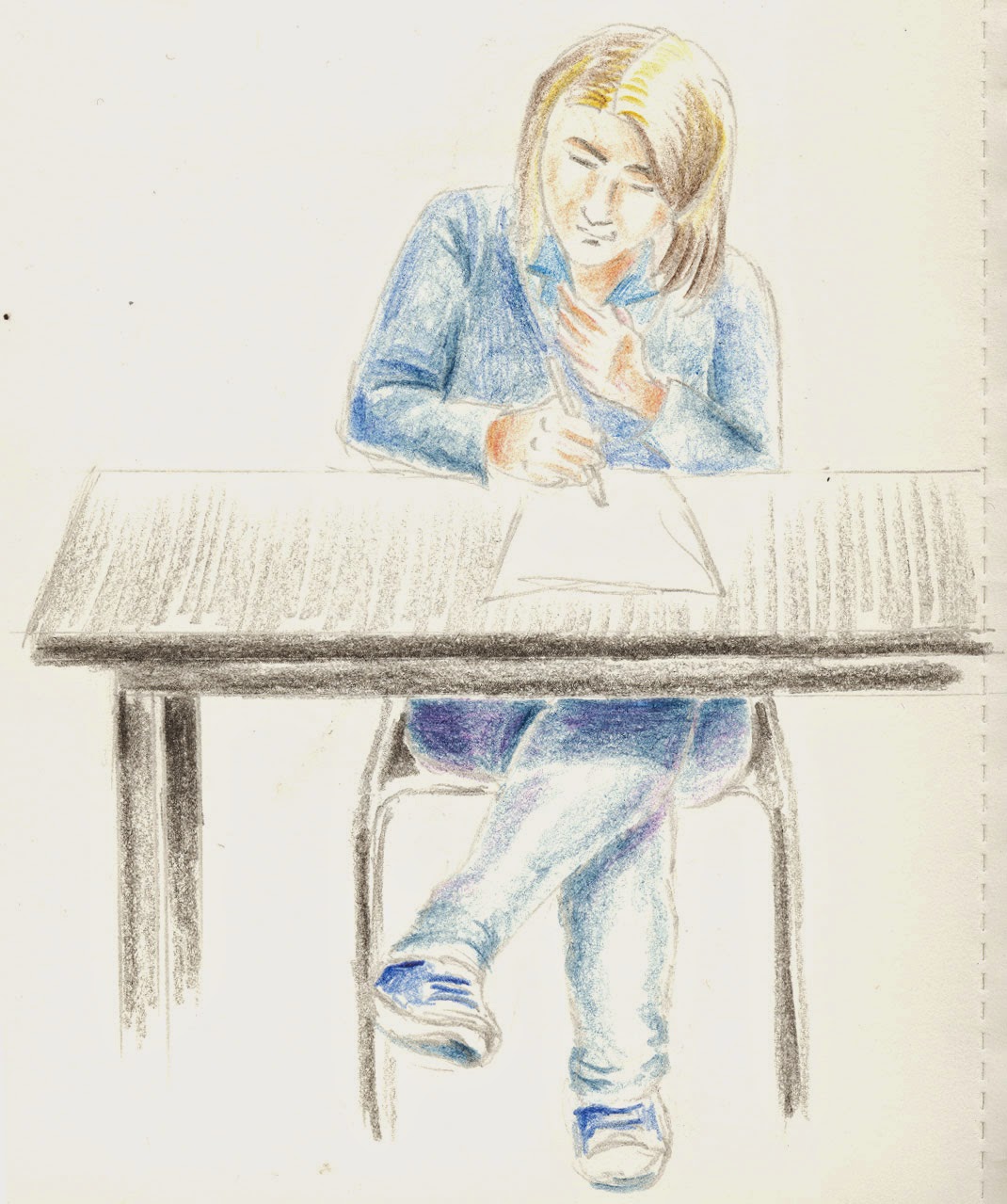En las clases del curso de Ilustración Creativa nos veremos cara a cara con los misterios del arte de la ilustración, aunque haya tiempos muertos, ideales para hacer unos rápidos esbozos de los compañeros de clase: