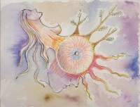 Aquí adjunto otro dibujo con el mismo esquema que el anterior pero pintado con acuarelas y algo de rotulador fino. La célula-donut se sustituyó por un gran ojo-que-todo-lo-ve.