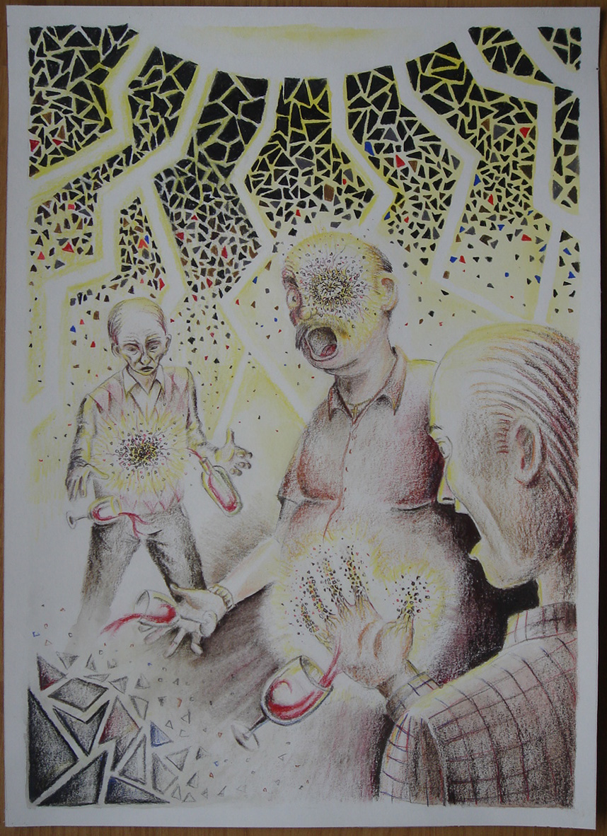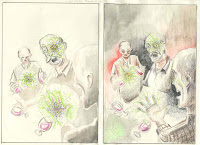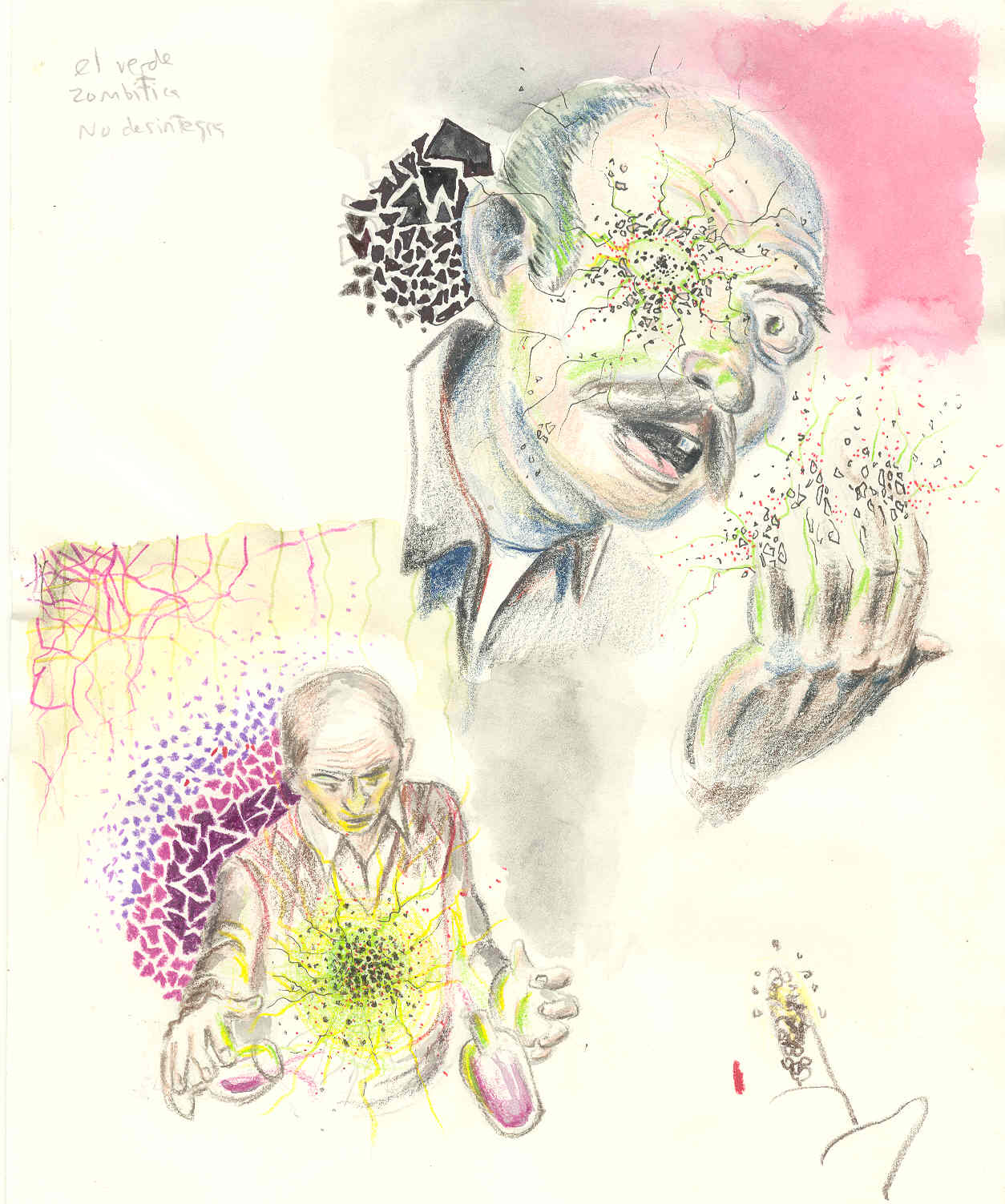 Para esta ocasión hice bastantes bocetos «investigando» como plasmar el proceso de desintegración.