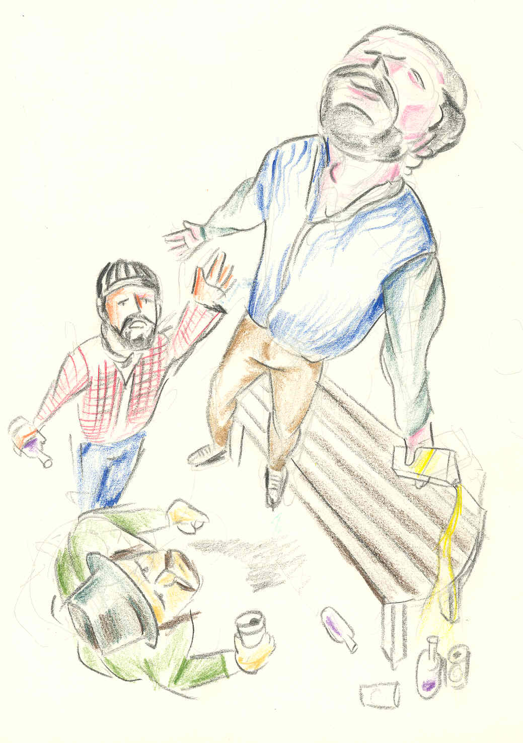 Cuarto y último dibujo de esta pequeña serie de ilustraciones que juegan con contextos urbanos más o menos cotidianos, dándoles un toque surrealista o fantástico (vaya usted a saber) para bien o para mal… o para peor.