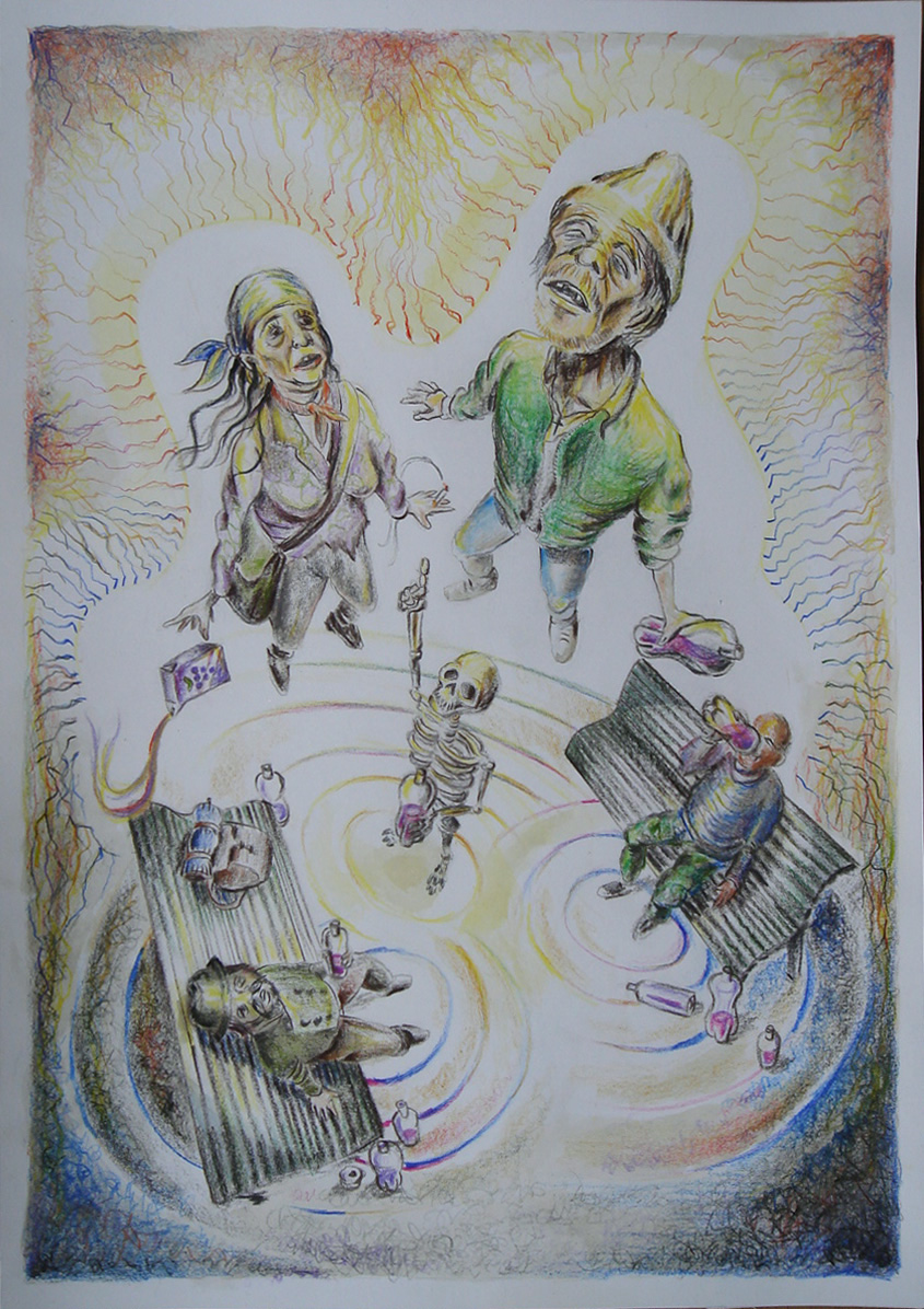 De nuevo utilicé casi exclusivamente lápices de colores sobre papel basik 240gr, formato A3.