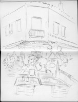 Primer día en Atenas. Descanso en una terraza del ultra turístico barrio de Plaka. No se como tuve ganas de hacer este boceto pues estaba casi literalmente hecho polvo… (Creo que la cerveza que me pedí ayudó a ello).