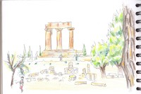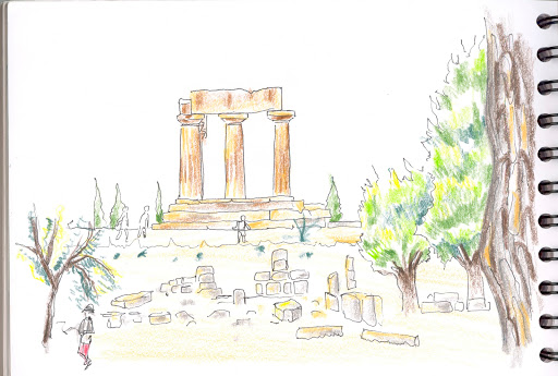Lo admito: 15 días en Grecia podrían dar para hacer muchos dibujos… Si no fuese por el infernal calor de agosto, las interminables pateadas que me he pegado y el continuo trasiego de un lugar a otro en transporte público.