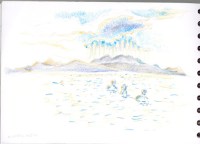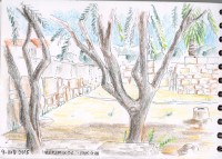 Aún así, de vez en cuando saqué los lápices a pasear conmigo para hacer sketching del paisaje griego, siempre acompañado de dos amigas: la sombra y una gran botella de agua.