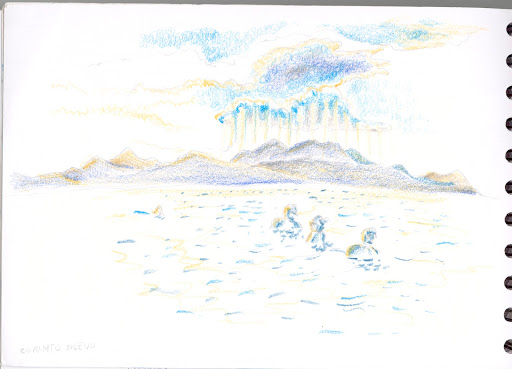 Antes de volver a Atenas decidí visitar Nuevo Corinto (otra hora de pateada), aunque básicamente fui directo a la playa donde me desplomé un buen rato, contemplando la calma del mar Jónico y a sus discretos veraneantes.