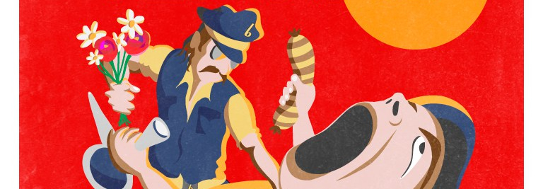 Aquí publico la primera versión del cartel, en la cual un servidor se tomó la libertad de cambiar el nombre del festival (por motivos que ya no vienen a cuento) e incluso inculcar una actitud beligerante a Mr.Postman, con puño cerrado sobre el Tragantua. Puede que así la composición tenga más sentido, ¿o quizás no?.