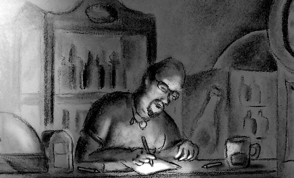 Y aquí abajo el dibujo impreso, un pelín más oscuro que le da un aire más… tenebrista 😀